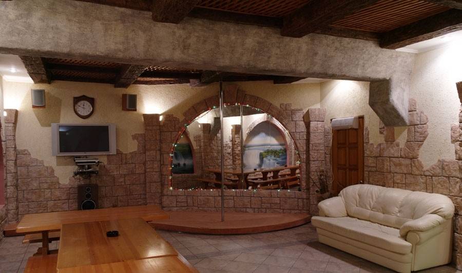 В зале: DVD, Аудио-видео, Банкетный зал, Бильярд Русский, Караоке, Сейф, Спутниковое ТВ, Танцпол, Тёплый пол, Холодильник, Шест для стриптиза.